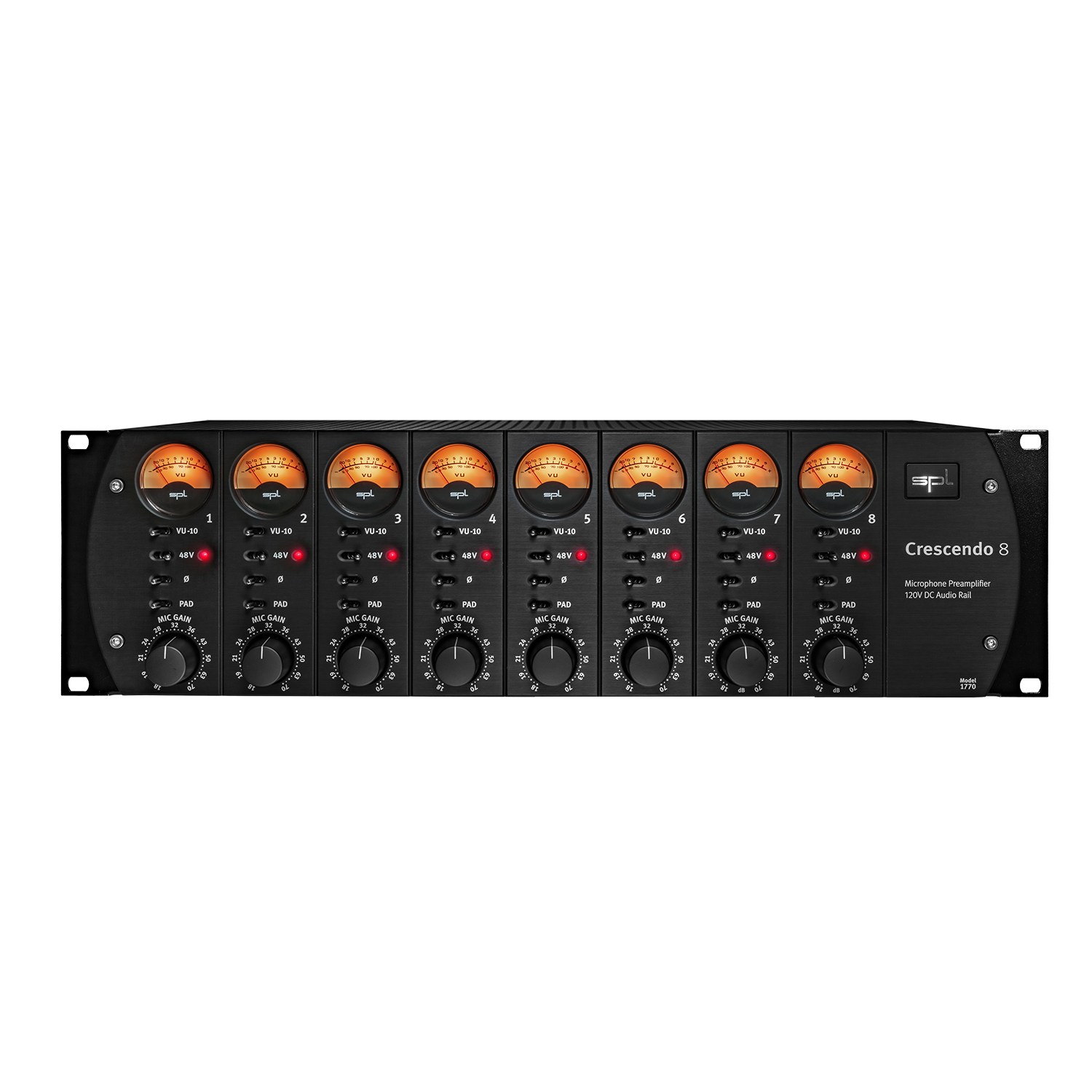 Crescendo 8 combines the precise sound that German Rundfunk-Technik is famous for with the innovative SPL 120V technology. The internal operating voltage of 120 volts allows Crescendo microphone preamplifiers to break completely new ground. This results in microphone preamps that sound detail-rich, vivid and equally honest.