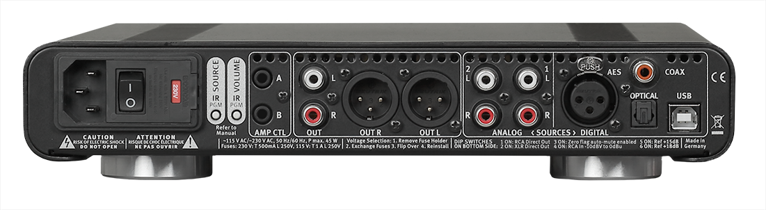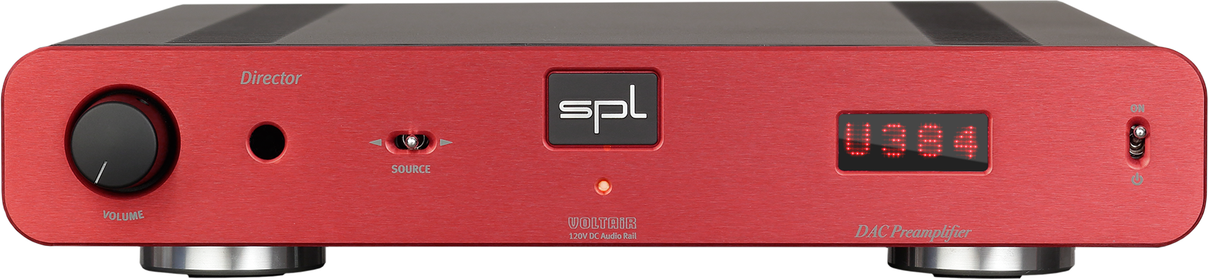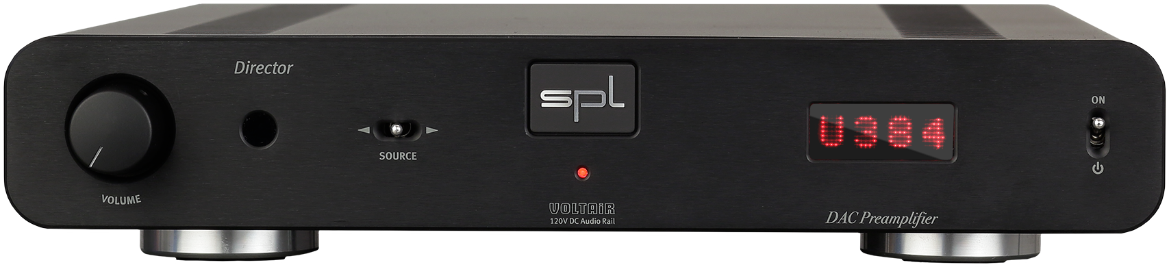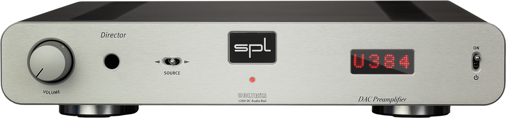 The central unit of the HiFi system is the preamplifier. With remote source selection and volume control, tape monitor path, retro-look-VU-meters, premium DA-converter and the all superior VOLTAiR technology, the Director caters for musical blockbusters.