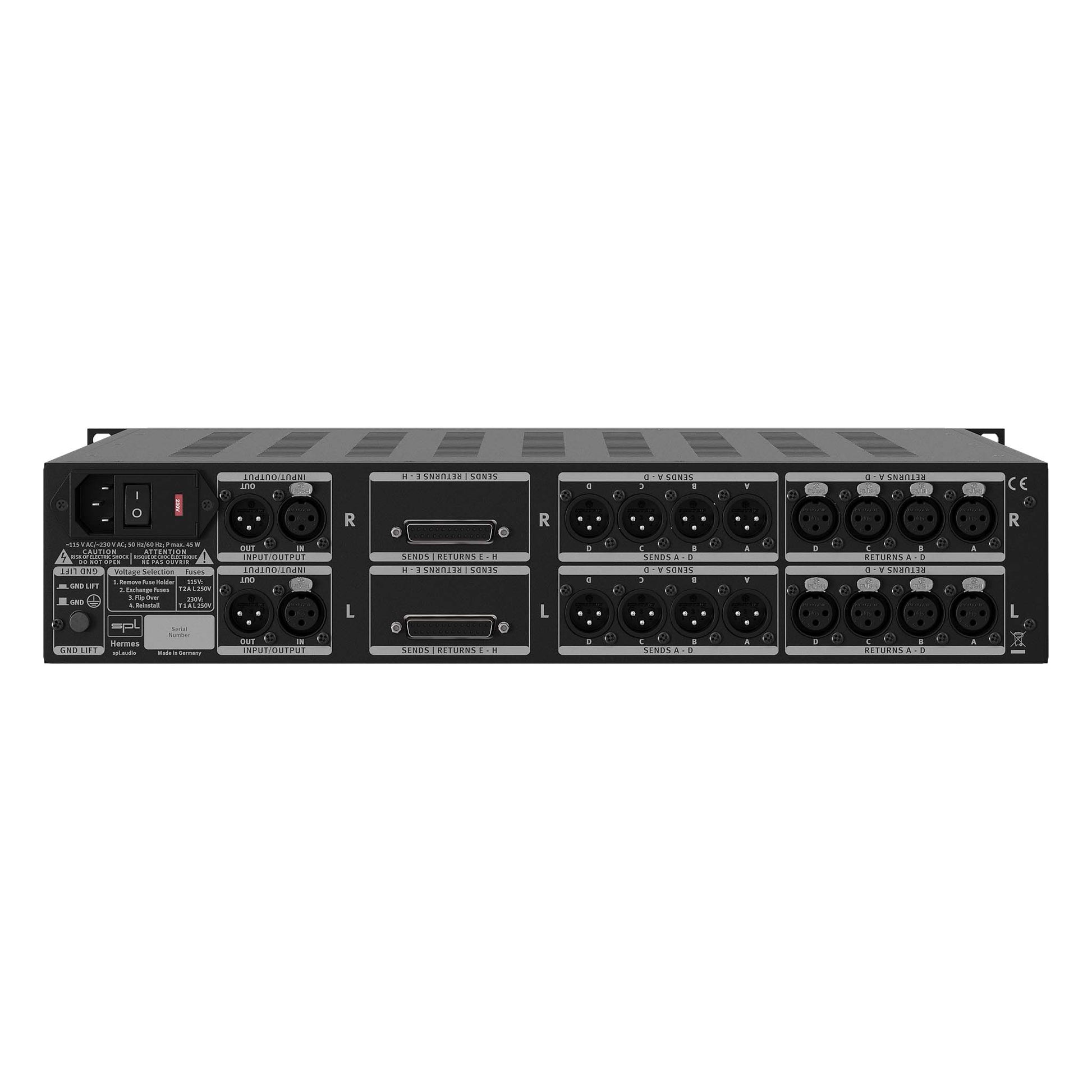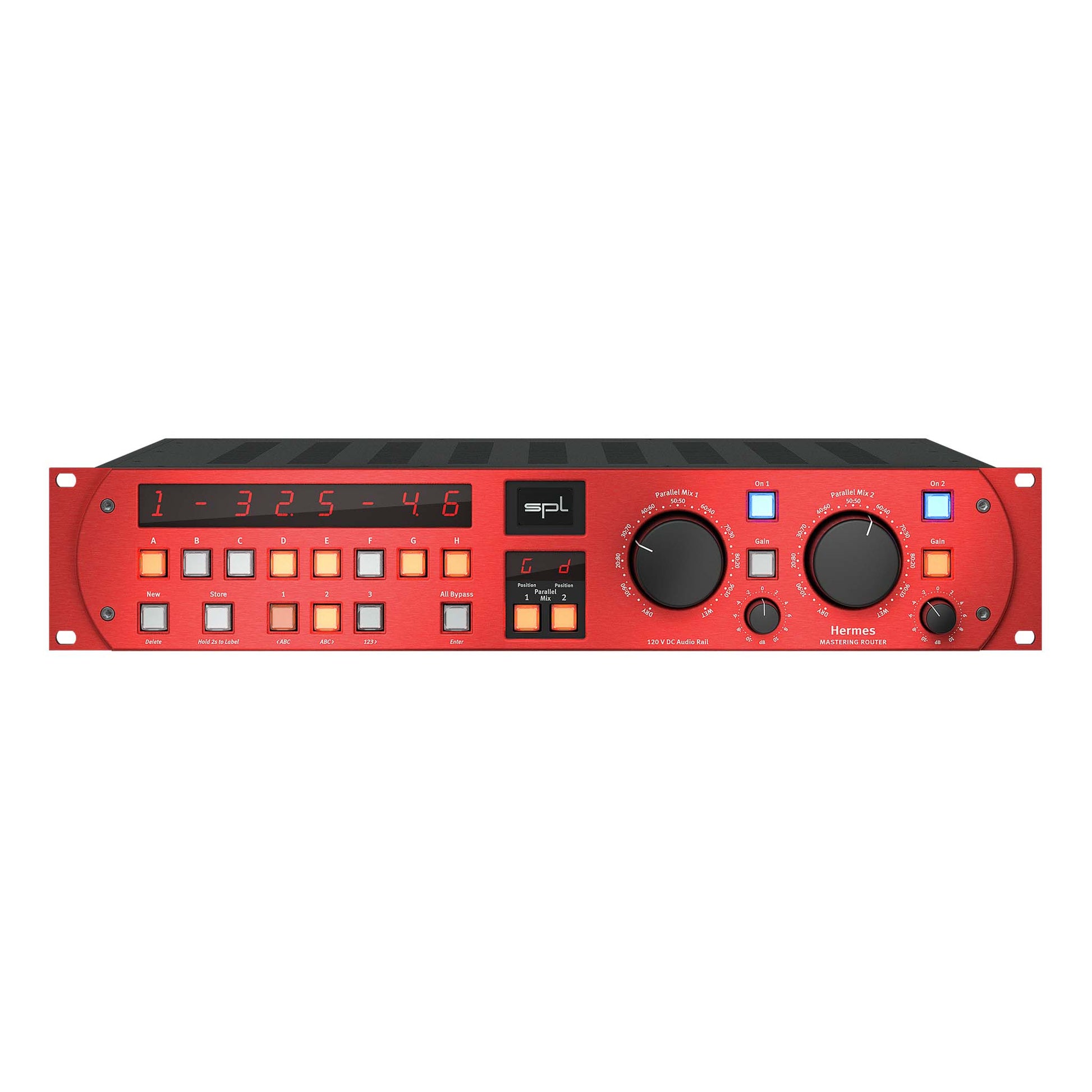 Hermes revolutionizes mastering. Now it is possible to have an audio signal processed by up to eight 2-channel processors in any order that can be stored. At the push of a button you can compare up to four complex processing chains.